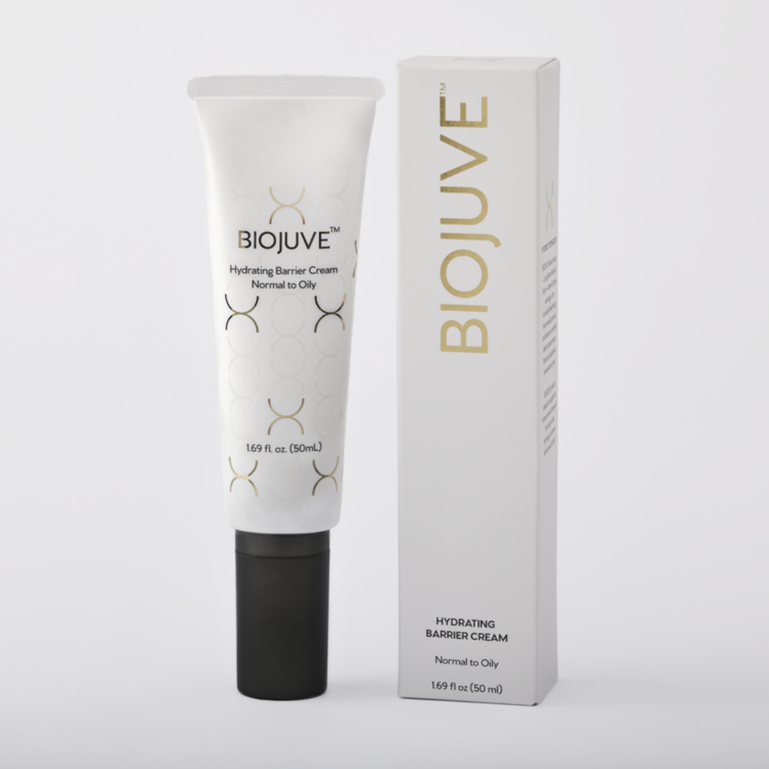 This lightweight, moisturizing Hydrating Barrier Cream comes in two versions, Normal to Dry and Normal to Oily. Both versions were designed to enhance the performance of BIOJUVE Living Biome Essentials Serum by protecting the living microbe technology from disruption caused by common ingredients found in makeup and sunscreen.